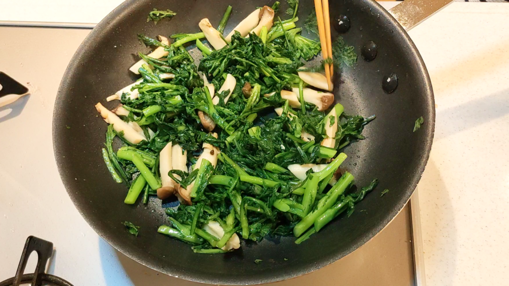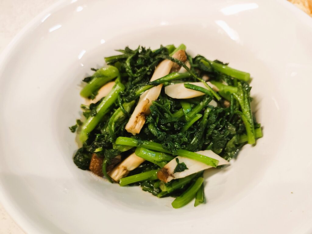 付け合わせ〈 春菊とエリンギの塩炒め 〉