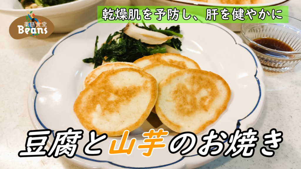 ふわとろ食感が楽しい、豆腐と大和芋のお焼き。体を潤し、乾燥肌やのどの不調をやさしくケア。軽い食事やおやつに、ぜひ作ってみてください。