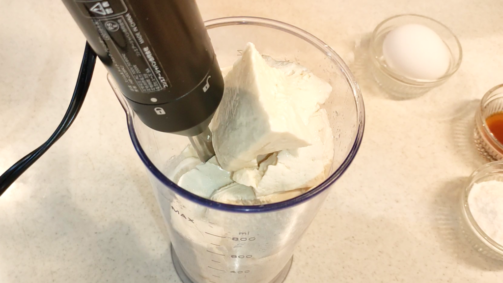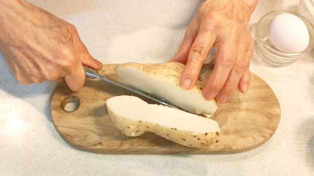 2.大和芋はざく切りにし、ブレンダーでピュレ状にする。